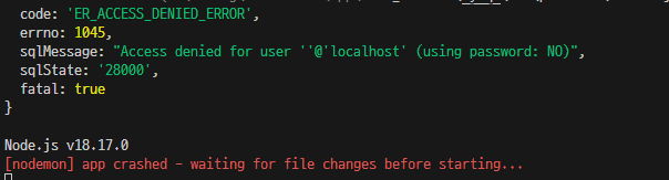 sqlMessage: "Access denied for user ''@'localhost' (using password: NO)",