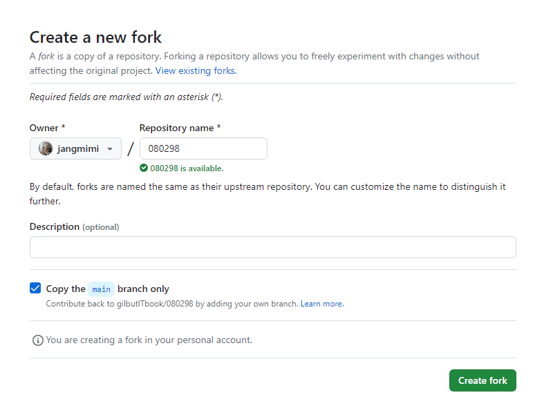 main branch only 여부 선택부분에서 나는 체크된 상태로 Fork했었고