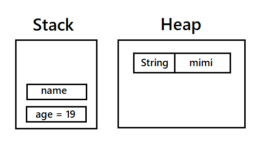| 원시타입의 데이터가 값과 저장 | Object 타입의 데이터가 저장 |